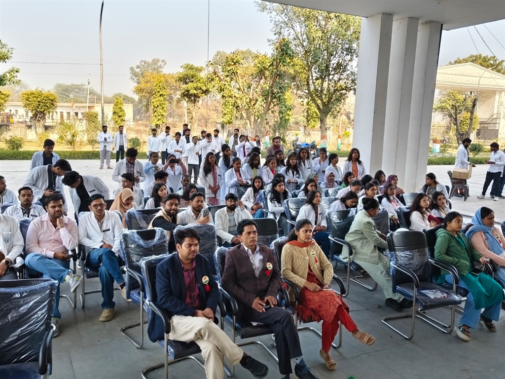 राजकीय होमियोपैथिक मेडिकल कॉलेज एवं चिकित्सालय, छेरत,अलीगढ़ ने आज आज दिनाँक 10 अक्टूबर 2019 को कॉलेज के बाहय रोगी विभाग के सभागार में विश्व मानसिक स्वास्थ्य दिवस पर एक संगोष्ठी का आयोजन किया गया। कॉलेज के प्राचार्य प्रो. डा. योगेंद्र सिंह माहुर के नेतृत्व में डॉ हरमन चीमा व डॉ निमेश कुमार ने इस कार्यक्रम की रूपरेखा बनाई। इस अवसर पर डॉ निमेश कुमार,डॉ. कनिका कौर, डॉ जाग्रति बाजपेयी,डॉ पुनीत गर्ग,डॉ कृति वार्ष्णेय, डॉ कीर्ति बाजपई एवं डॉ अनुभव त्रिपाठी ने सभागार में उपस्थित लोगों को सम्बोधित किया। कार्यक्रम का संचालन करते हुए डॉ निमेश कुमार ने बताया कि आधुनिक परिवेश में व्यस्तता,जरूरत से ज्यादा उम्मीद व आपसी संबंधों में कमी ही मानसिक रोगों के प्रमुख लक्षण है। जिन्हें होम्योपैथी विधा से दूर किया जा सकता है चूंकि यह विद्या प्रत्येक रोगी के मानसिक लक्षणों का अवलोकन करने के बाद ही होम्योपैथिक दवा का चुनाव करता है। डॉ हरमन चीमा ने विश्व मानसिक स्वास्थ्य दिवस की इस वर्ष का विषय मानसिक तनाव से आत्म हत्या पर प्रकाश डालते हुए बताया कि किस तरह से इन वर्षों में मानसिक तनाव के कारण आत्महत्या कर रहे है जिसका मुख्य कारण आपस मे संवादों की कमी है। जिसको आपस मे एक दूसरे से बातचीत कर दूर किया जा सकता है। डॉ कनिका कौर ने बच्चों में माँ बाप से आपसी संबाद में कमी व माँ बाप की व्यस्तता से बच्चे के अंदर मानसिक रोगी के लक्षण पैदा कर सकता है। डॉ जाग्रति बाजपेयी ने संगोष्ठी में कहा कि अचानक एकांकी पन,चिड़चिड़ापन किसी भी व्यक्ति का मानसिक रोग का लक्षण हो सकता है। डॉ पुनीत गर्ग ने आज कल के समाज मे अपनी प्रसन्नता से खुश न रहकर दूसरों की खुशी से दुःखी होने की भी मानसिक रोग का लक्षण बताया व इसे आपस में एक दूसरे से सुख दुःख सांझा कर दूर किया जा सकता है। डॉ कृति वार्ष्णेय ने कहा कि इस दिन को WHO द्वारा निर्धारित विश्व मानसिक स्वास्थ्य दिवस तभी सार्थक है जब हर व्यक्ति अपनी जिम्मेदारियों की ठीक से निर्वाह करते हुए एक दूसरे से अपने विचारों का आदान प्रदान करे व अकेले पन से दूर हो। डॉ कीर्ति बाजपेयी ने बताया कि होम्योपैथी विधा से हर प्रकार के मानसिक रोगियों का उपचार संभव है। डॉ अनुराग त्रिपाठी ने कहा कि किसी भी व्यक्ति के अंदर अचानक ऐसे लक्षण दिखना जो असामान्य है मानसिक रोग का प्रथम लक्षण हो सकता है। इसी संगोष्ठी में एक रोगी जो की अपने डिप्रेशन का इलाज करवाने आये थे इस कॉलेज का कोटि कोटि नमन व धन्यवाद करते हुए कहा कि मैं अवसाद के कारण आत्महत्या की दहलीज से इस होम्योपैथिक चिकित्सा द्वारा वापस अपनी स्वस्थ जीवन मे लौट पाया हूँ। इस संगोष्ठी में डॉ मंजू मन्ध्यान, डॉ सचिन पाल सिंह, डॉ शैलेंद्र कुमार मौर्या, डॉ पुष्पराज सिंह,